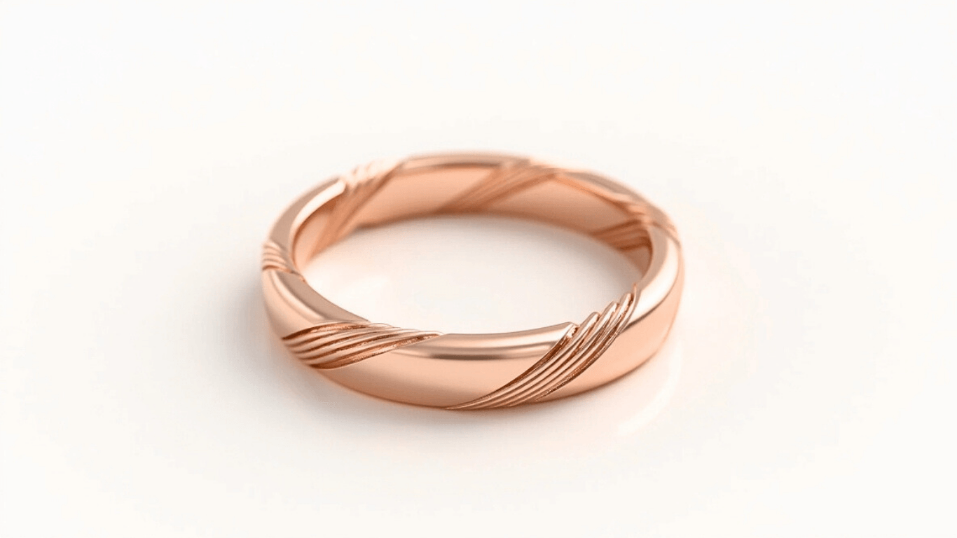 טבעת זהב 14 קראט דקה עם חריטות אלגנטיות המעטרות את כל הטבעת. טבעת מעוצבת ועדינה, מושלמת לשימוש יומיומי ואירועים מיוחדים.