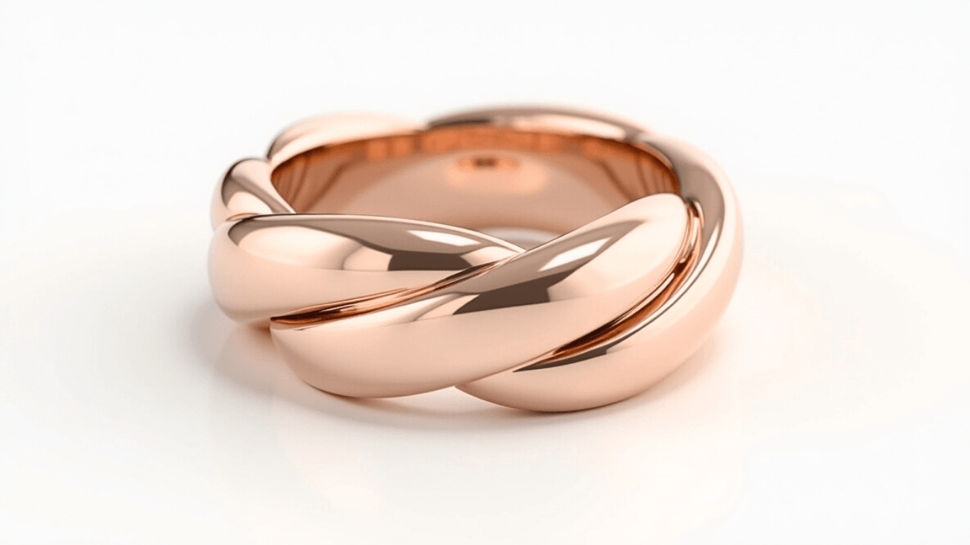 טבעת זהב 14 קראט רחבה בעיצוב קלוע ייחודי ומרהיב, טבעת שמדגישה סטייל ובולטות עם מראה אלגנטי ועכשווי.