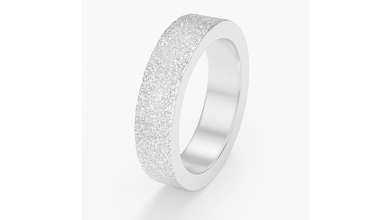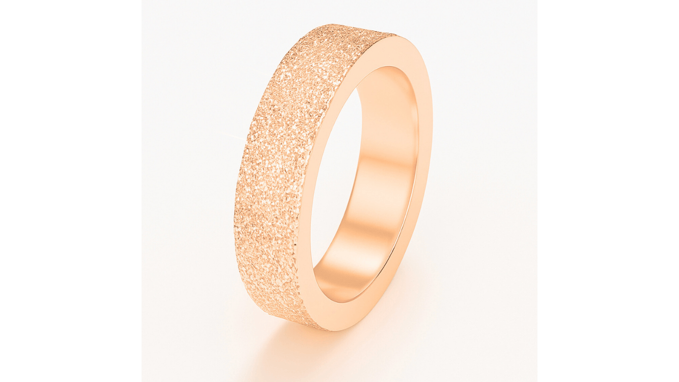 טבעת זהב 18 קראט רחבה עם טקסטורת ברזל מחוספסת, טבעת נישואין יוקרתית ועמידה לנשים המחפשות עיצוב אלגנטי עם נגיעה מודרנית.