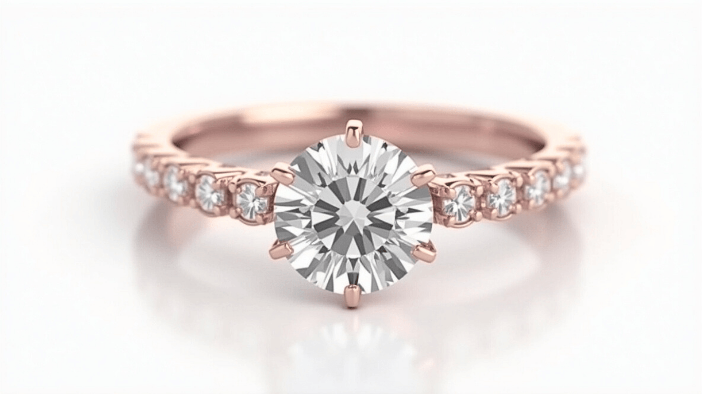 טבעת עם יהלום מרכזי, טבעת זהב 14K, טבעת יהלום עגול, טבעת עם יהלומים מסביב, טבעת יוקרתית, טבעת אירוסין, טבעת לנישואין