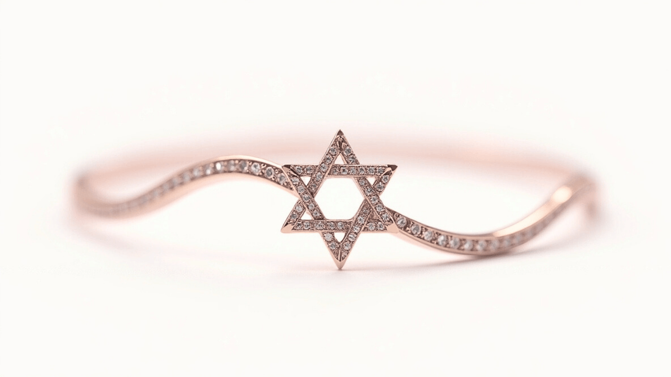 צמיד זהב 14 קראט בעיצוב ייחודי של מגן דוד במרכזו, משובץ יהלום עגול נוצץ. לאורך הצמיד משובצים יהלומים קטנים במסגרת עגולה שמעניקה ברק ונוכחות. עיצוב קלאסי עם נגיעה עכשווית, שמחבר זהות, סטייל ואלגנטיות. מושלם כמתנה עם משמעות או תוספת ייחודית למראה יומיומי או חגיגי.