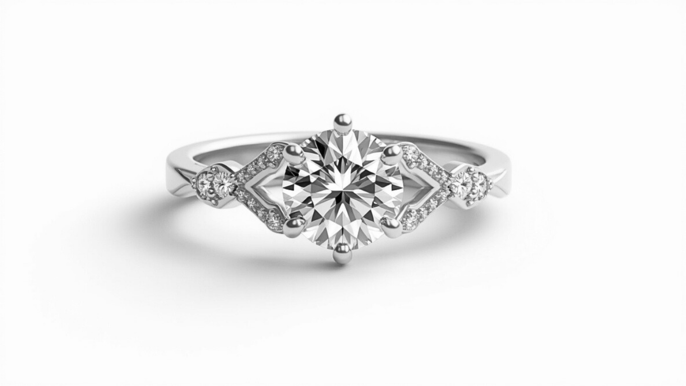 טבעת אירוסין המרהיבה עשויה זהב 14 קראט ומשובצת ביהלום מרכזי עגול ונוצץ. עיצוב גאומטרי ייחודי בזרועות הטבעת עם שיבוץ יהלומים קטנים מעניק לה מראה יוקרתי ואצילי, תוך שילוב מושלם בין עיצוב מודרני לאלגנטיות קלאסית – תכשיט שלא ניתן להתעלם ממנו.