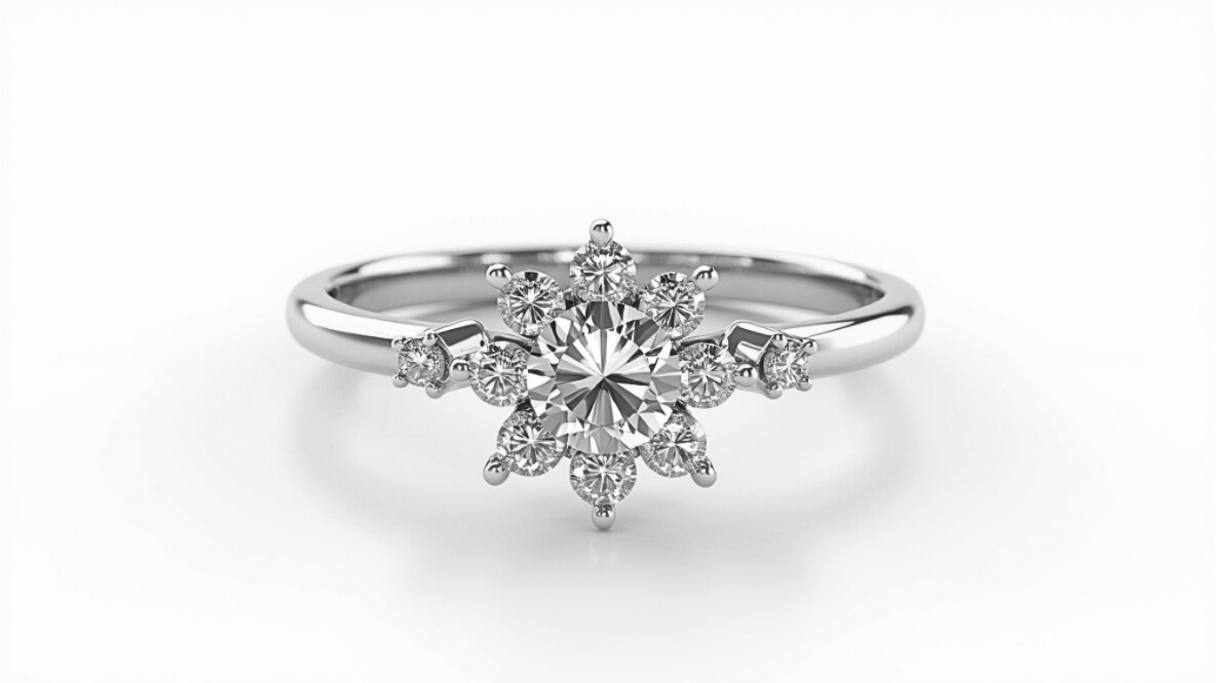 טבעת זהב 14K בעיצוב כוכב עם יהלום מרכזי מרהיב ויהלומים קטנים המקיפים אותו. העיצוב המיוחד משדר יוקרה ואופי, מושלם עבור אישה שמחפשת טבעת אירוסין בלתי נשכחת. תכשיט בעל נוכחות שמביא את עולם היוקרה אל האצבע.