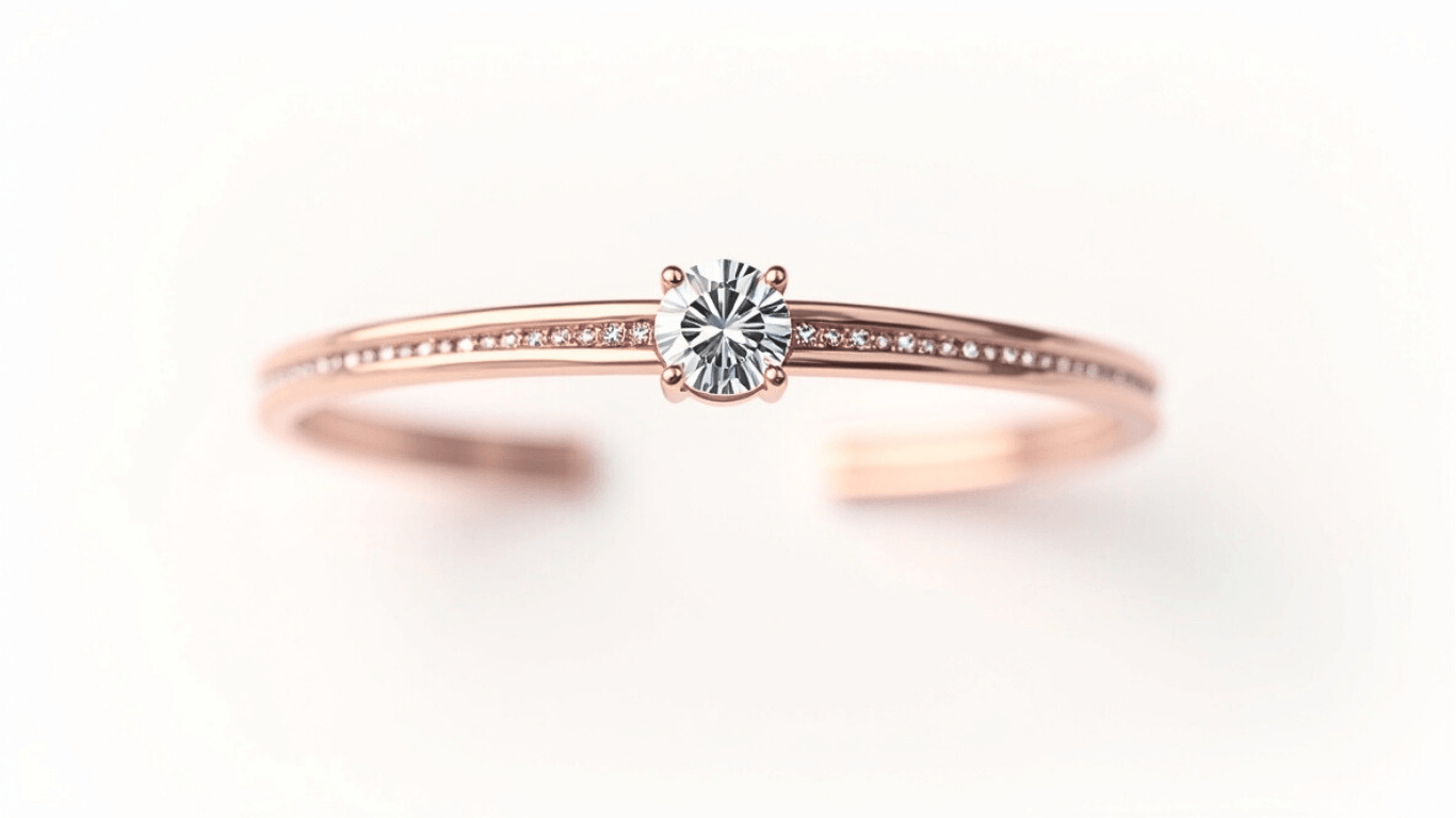 צמיד זהב 14 קראט בעיצוב פתוח ועדין, המעוטר בקו דק של יהלומים זוהרים לאורך כולו, ומרכזו מעוטר ביהלום עגול גדול הנתון בשיבוץ ארבע שיניים. העיצוב הסימטרי והנקי משדר יוקרה, מודרניות ואיזון מדויק. צמיד "אלגנטיות כפולה" הוא בחירה אידאלית לאישה שמעריכה עידון עם נוכחות – פריט בולט שמשלים כל הופעה בקלאסיות מהפנטת.