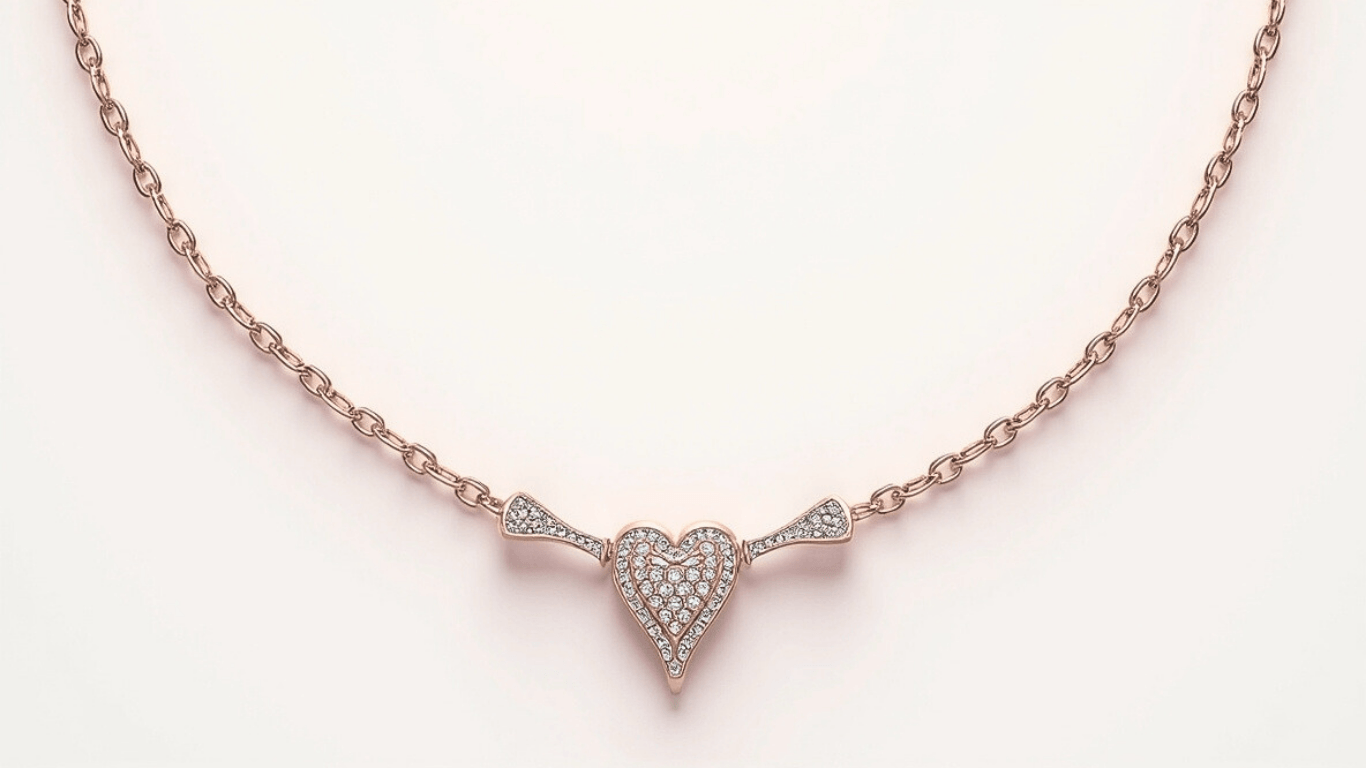 שרשרת זהב 14K צהוב בעיצוב רומנטי עם לב משובץ ביהלומים זוהרים ומסביב לו שני תכשיטים אלגנטיים המוסיפים לו נוכחות. יהלומים דמויי-מרquise ומסגרת יוקרתית יוצרים שילוב מושלם של יופי ונוחות. השרשרת מהווה את הבחירה האידיאלית למי שמחפש תכשיט שמחמיא ומסמל אהבה אמיתית, עם עיצוב ייחודי שמתאים לכל אירוע.