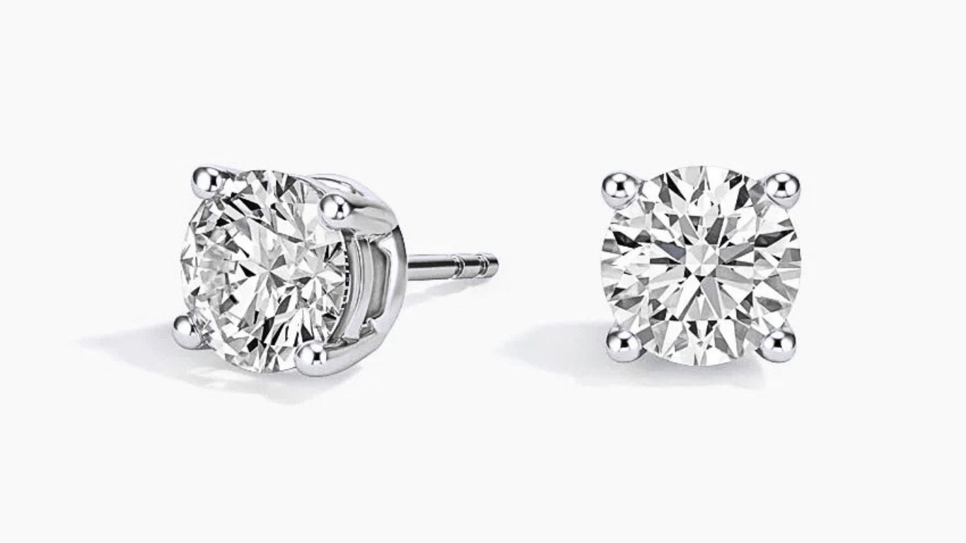 עגילי פין מזהב צהוב עם יהלום עגול, משובץ בארבע שיניים עדינות המדגישות את האבן. מדובר בעיצוב הקלאסי והאצילי ביותר בעולם התכשיטים מינימליסטי, יוקרתי, על זמני.